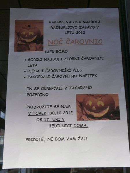 Iz OŠ Nove Fužine so nas povabili na "Noč čarovnic".