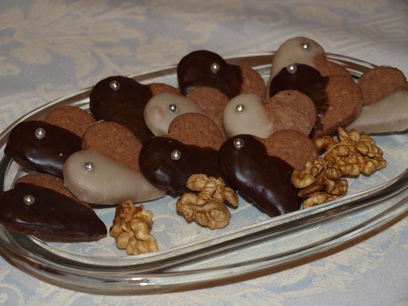 Medeni srčki pomočeni v belo in temno čokolado