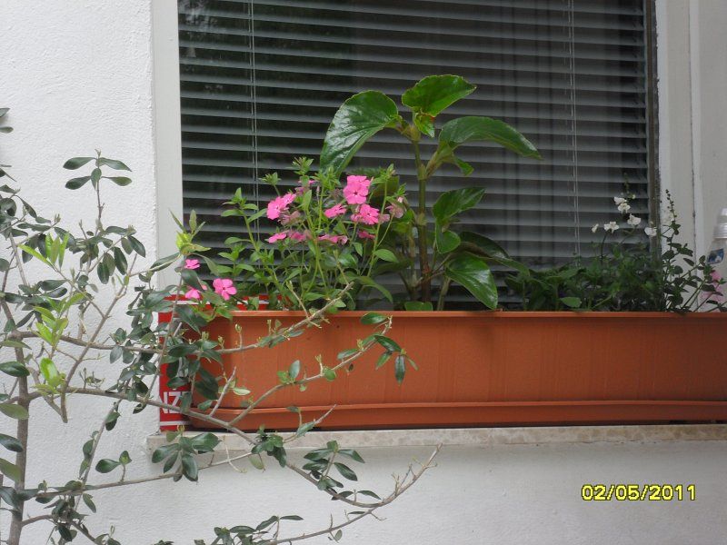 letos imam na vsaki okni drugačne rože:viseča plamenka,zmaj.krilo,petun.drob.cve