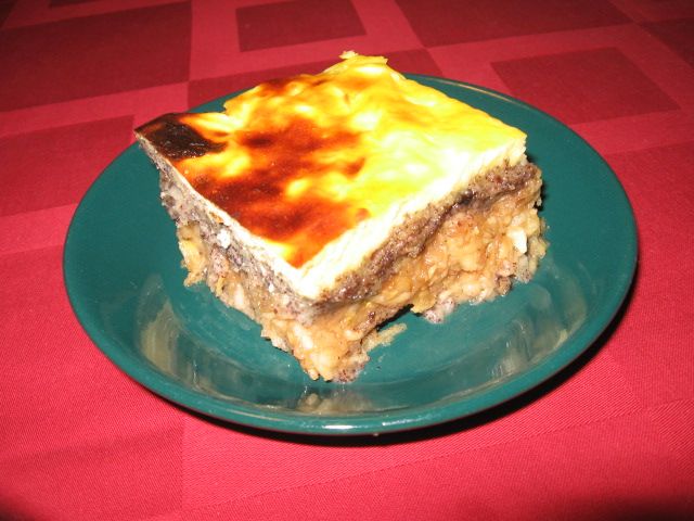 Lazanja z jajčevci, genovskim pestom in češnjevci