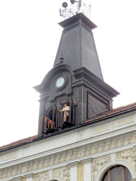 Ob polni uri se v zvoniku prikažeta Martin Krpan in kobilica med glasbo