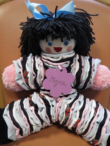 Babice v tej porodnišnici potrebujejo veliko materiala da nastanejo te prikupne punčke. Material, ki ga uporabljajo so pisano bombažno blago, tudi stare zavese (te jim služijo za podlogo), pa volna in trakci iz blaga za mašnice. Zato pozivam kulinaričarke, ki imajo kaj odvečnega materiala, da se javijo Dušanki na ZS.