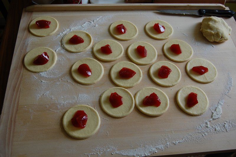 Zdaj si me spomnila, Majča, da sem včeraj zvečer pripravila testo za marmeladne žepke in bo treba delo dokončat. Če prav vidim, po datumu na slikcah, si se tudi ti danes zabavala s tem. Jaz pa lepo priznam, da se težko spravim zraven, no potem pa ni več problemov, ko začnem.