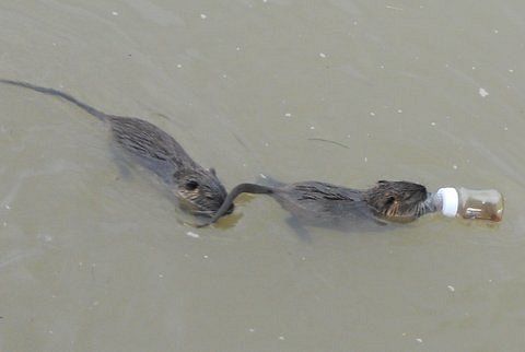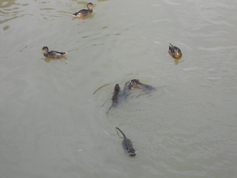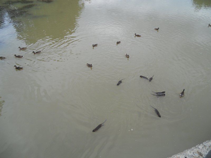 Obiskovalci mostu redno krmijo račke, med nje so se pomešale številne mlade piž-