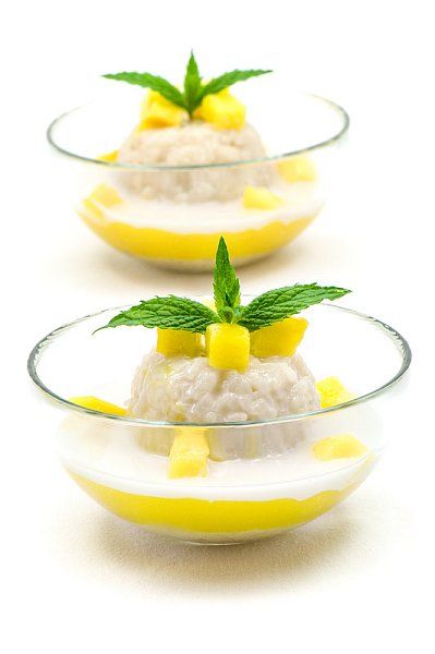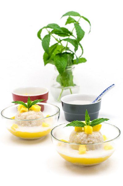 Lepljiv riž z mangom kot sladica, zajtrk ali večerja