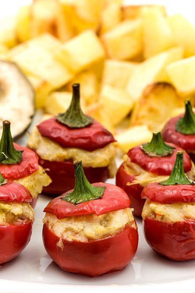 Zapečeni polnjeni čiliji z artičokami in sirom (veganskim)