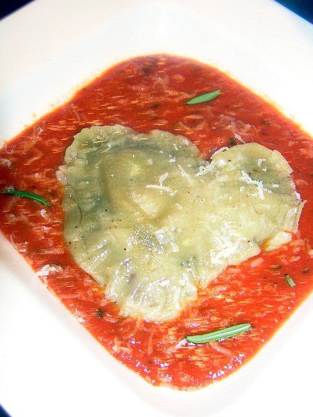 glavna jed: domače testenine polnjene z gobami in mocarelo v paradižnikovi omaki