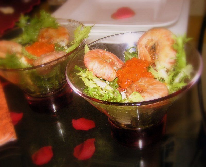 na vrhu še škampi in tapenada