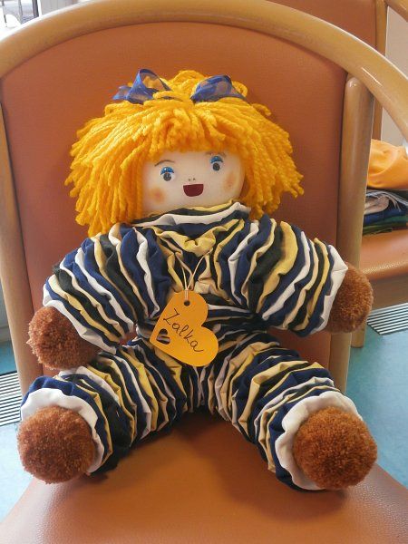 Hvala vsem za vzpodbudne besede. Izgleda, da so res všečne, saj ne uspemo sproti zadostiti vsem željam. Težava nastane, če zboli kak ključni izdelovalec, tako trenutno boleha naš "mojster" za oblikovanje glavic za srednje in velike punčke, tako da se naročila za te kopičijo. Penasta guma čaka na njegove pridne in natančne roke, me pa držimo pesti, da možakar čimpreje ozdravi. Porodnišnica Fužine ga težko čaka ![]()