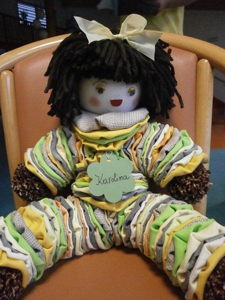Hvala vsem za vzpodbudne besede. Izgleda, da so res všečne, saj ne uspemo sproti zadostiti vsem željam. Težava nastane, če zboli kak ključni izdelovalec, tako trenutno boleha naš "mojster" za oblikovanje glavic za srednje in velike punčke, tako da se naročila za te kopičijo. Penasta guma čaka na njegove pridne in natančne roke, me pa držimo pesti, da možakar čimpreje ozdravi. Porodnišnica Fužine ga težko čaka ![]()