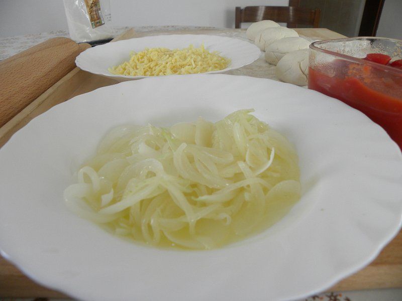 na kolobarje narezano čebulo dušimo na oljčnem olju, da postekleni