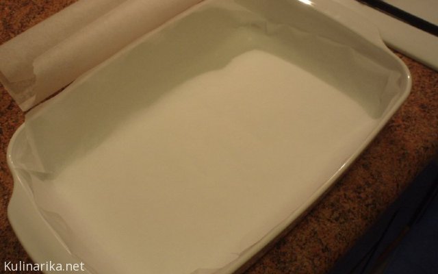 Zmes vlijemo v pekač obložen s peki papirjem ter pečemo na 180, 20 minut