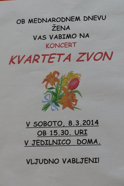 Popoldan pa nam je kvartet Zvon pripravil lep koncert domačih pesmi -