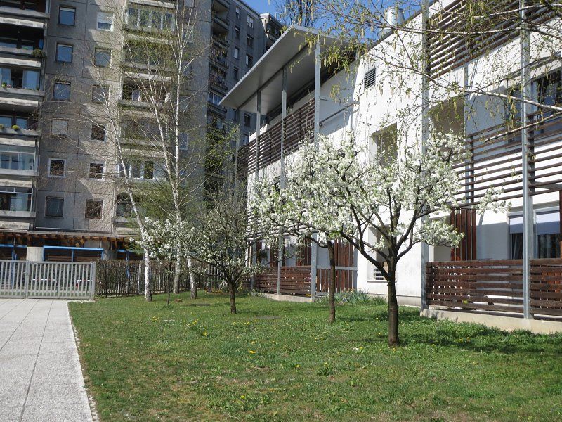 V domskem parku slive, polne cvetkov, obletavajo čebelice