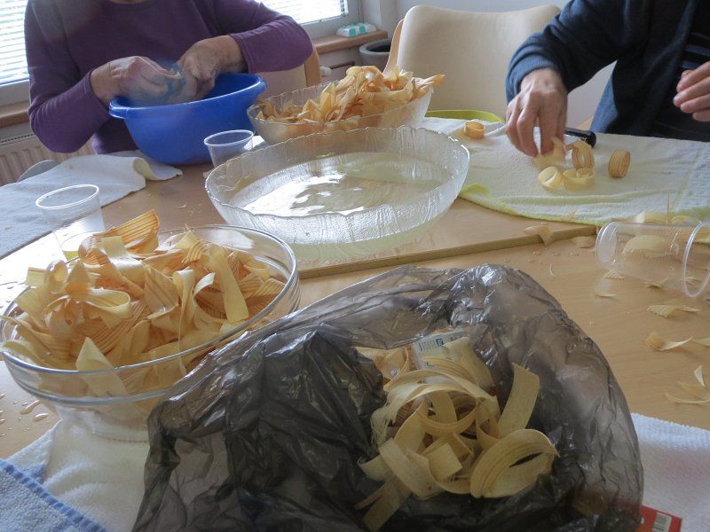 V delavnici smo dopoldne pripravljali oblance za izdelavo butaric, v kulinarični