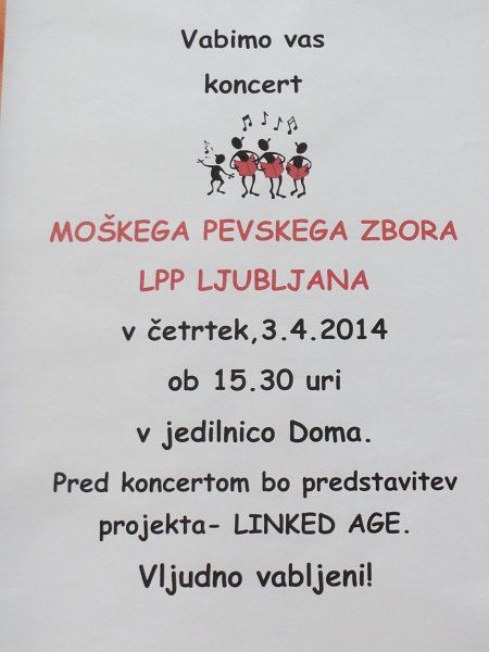 12 pesmi - taki koncerti se vedno končajo s skupno pesmijo zbora in stanovalcev.