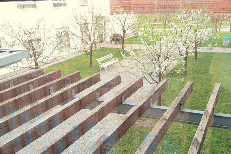 češnjev drevored v parku iz nadstropja