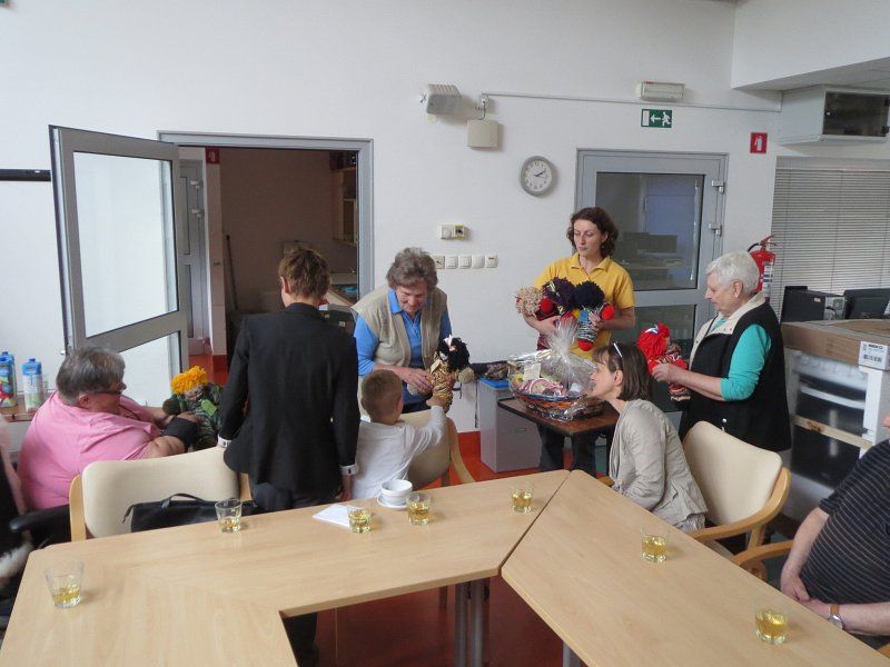 s košaro naših proizvodov(sokovi, marmelade, klobase) in punčkami za vse otroke.