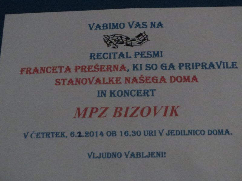 jih zrecitirale stanovalke Doma, eno pesem je v čast Prešernu spesnila domska