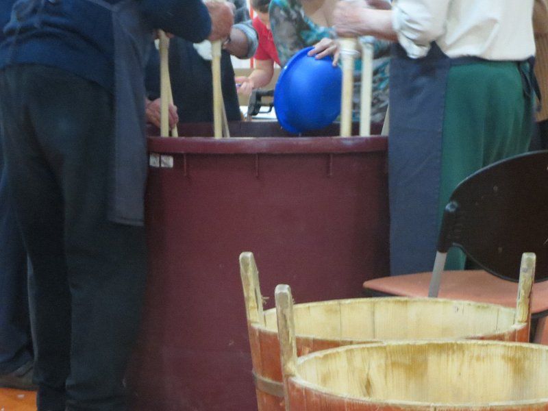 najmočnejši moški pa so naribano zelje prav močno tlačili in ga pridno solili v