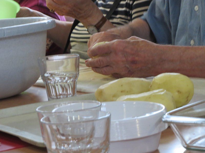 treba najprej krompir olupiti in razrezati, potem je sledila priprava krompirje-