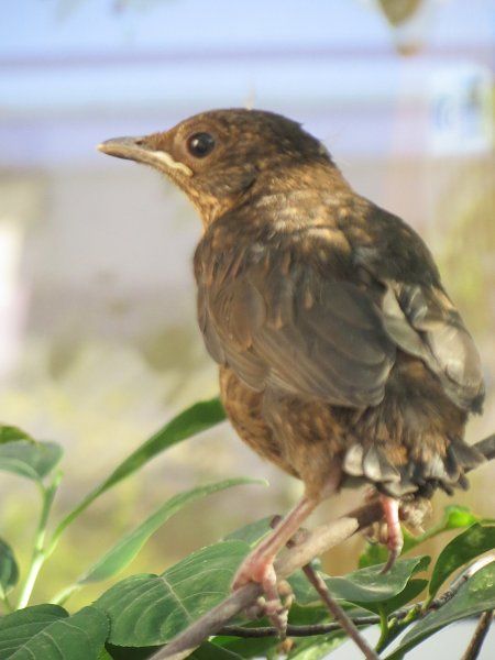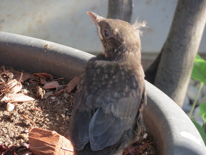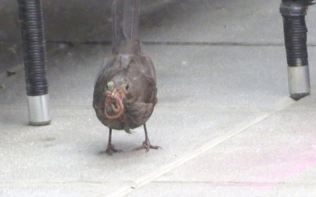 Kosovka nosi zajtrk v gnezdo v atriju.
