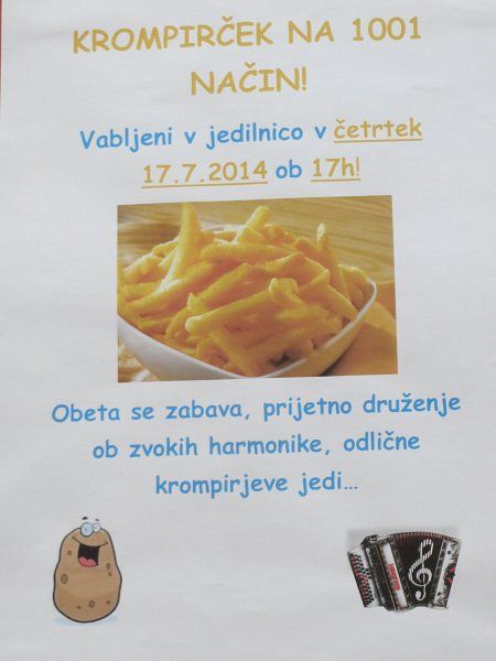 tokrat vse iz krompirja. Med prepevanjem ob spremljavi harmonike je bilo seveda