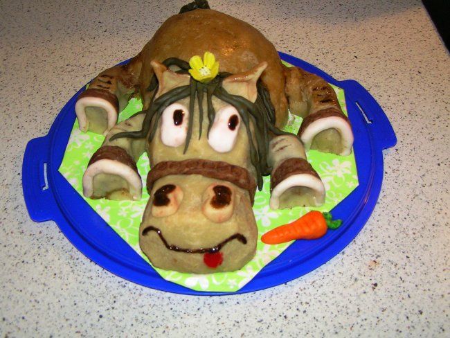 Levček iz mase za 3D oblikovanje tort, spodaj torta nutella
