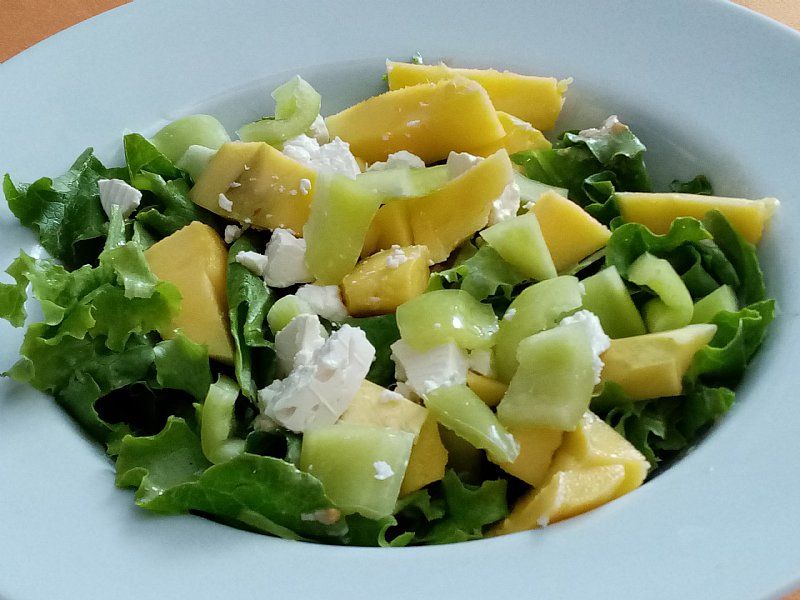 Zelenjavni mix, lignji na česnu in belem vinu; zelena solata