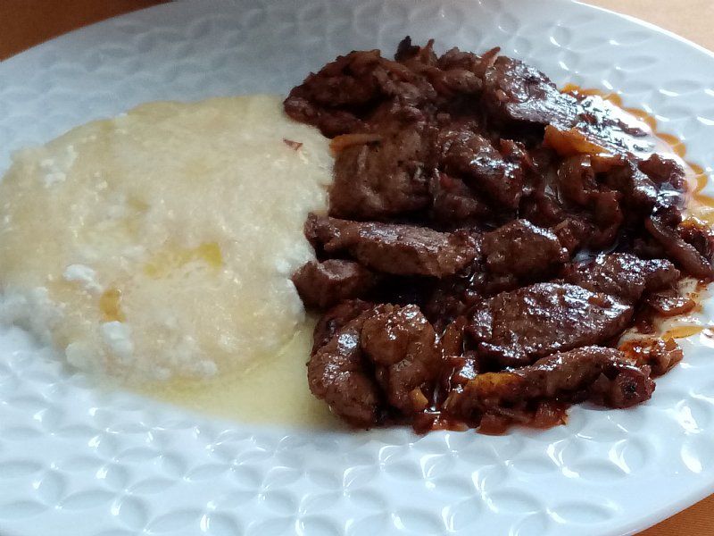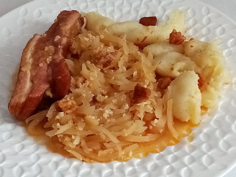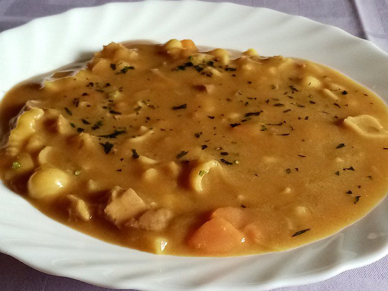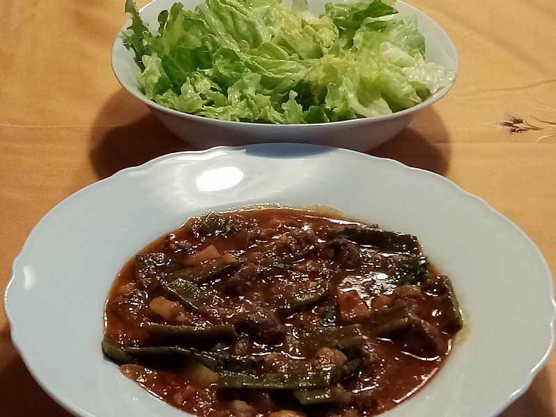 Istrski fuži, piščančje meso v omaki; zelena solata