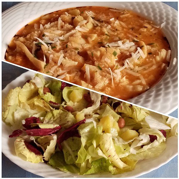 Vampi, štrucar in večbarvni radič s krompirjem in fižolom