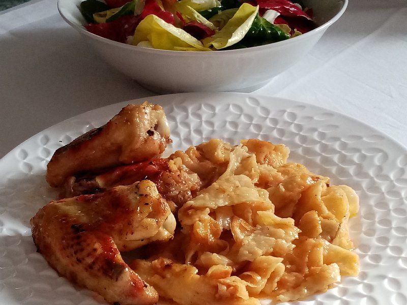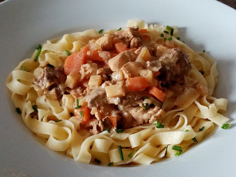 Piščančji paprikaš, široki rezanci ; rdeča pesa