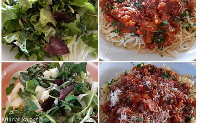 Rižota s piščancem, špageti z zelenjavno omako