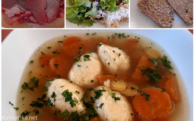 Goveja juha z zdrobovimi cmoki, mesna pečenka