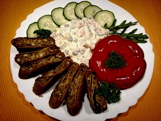 Polnjene palačinke po dunajsko, francoska solata in pisana sveža zelenjava ...