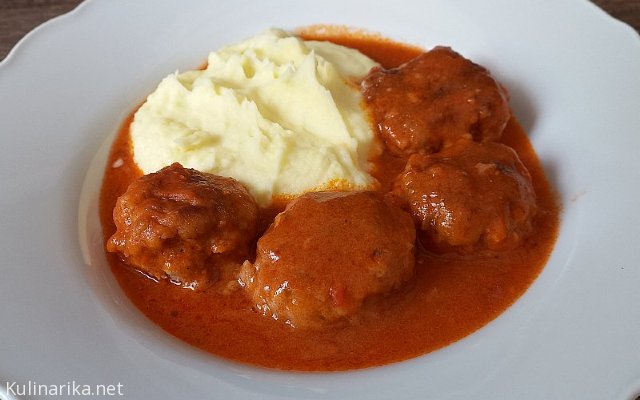 Čuftice v paradižnikovi omaki, pire krompir