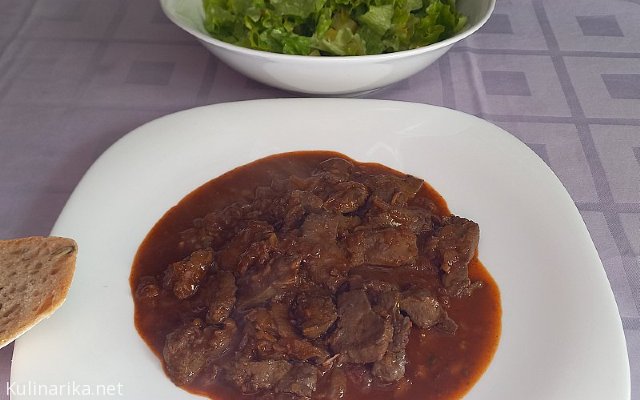 Ajdova kaša na slanini, vratovina v jurčkovi omaki; zelena solata