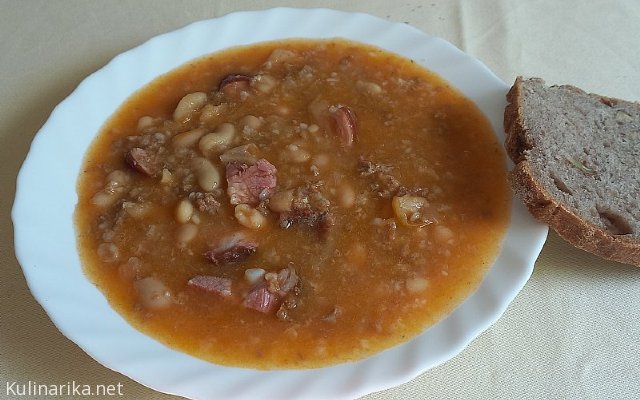 Bulgur na čebuli in jurčkih, popečena gov.iz juhe v omaki; zelena solata