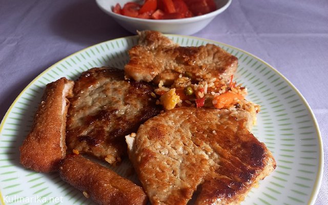 Basmati riž, piščančji zrezek v šampinjonovi omaki