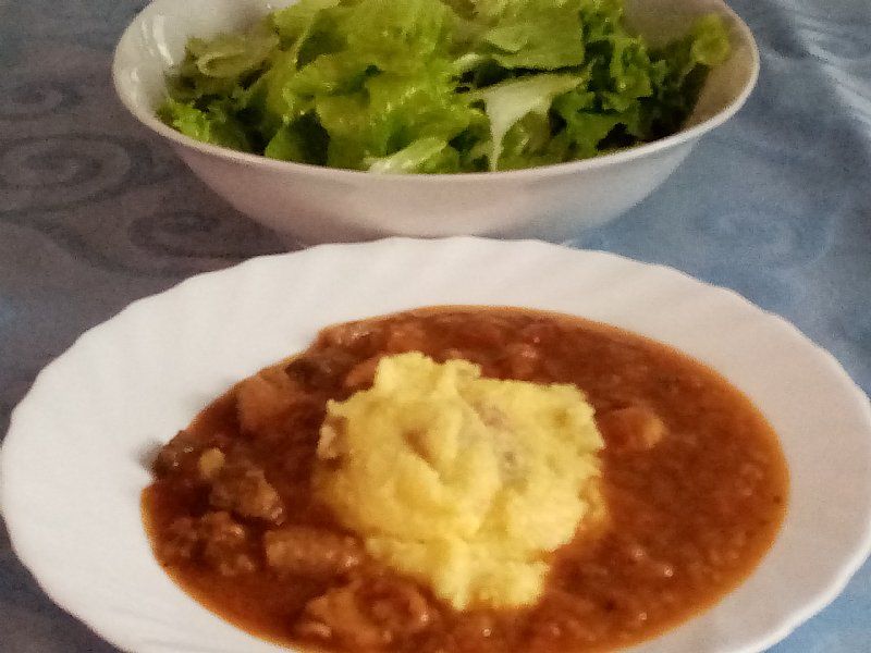 Čuftice v omaki, pire (krompir/zelena), zeljnata solata