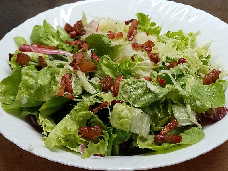 Radič s krompirjem in popečeno slanino
