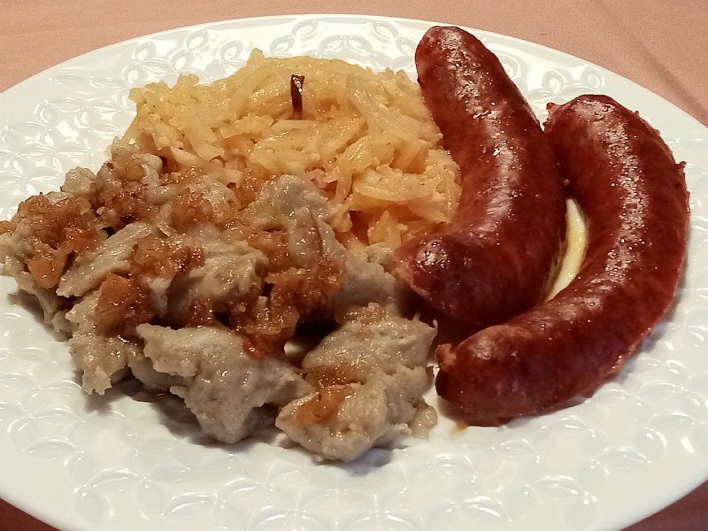 Bujta repa, krompirjevo/ajdovi žgančki zabeljeni z mletimi ocvirki in prepraženo