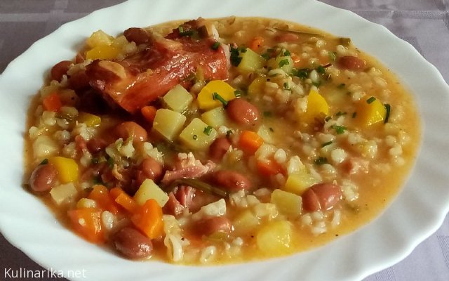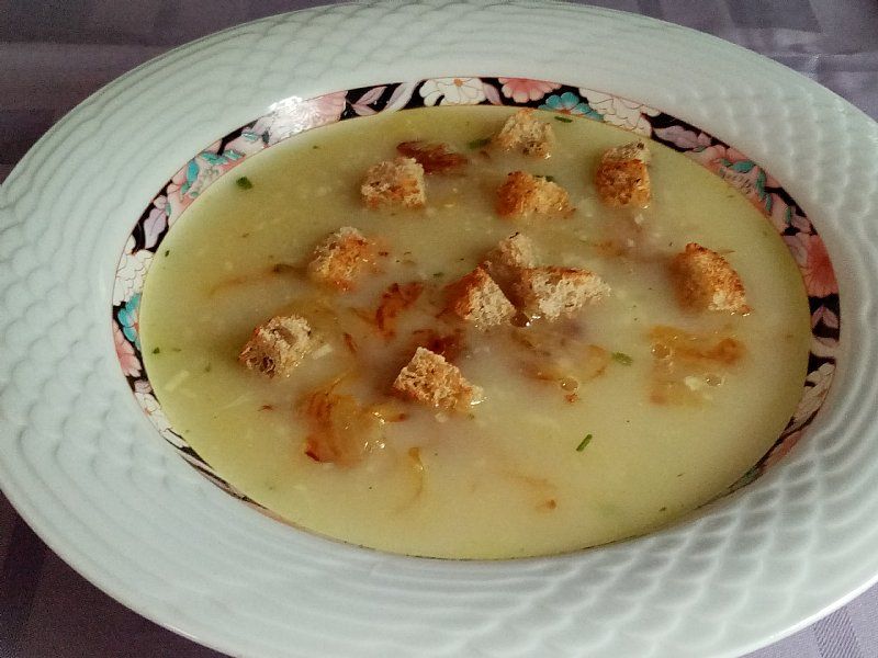 Ostanki piščanca, korenček, koleraba... zalito z juho in zakuhani zdrobovi žličn