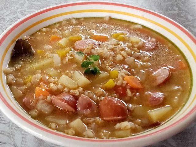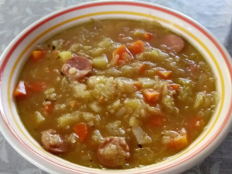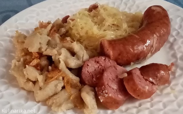Dušeno kislo zelje, klobasa, ajdovi žganci s popečeno čebulo