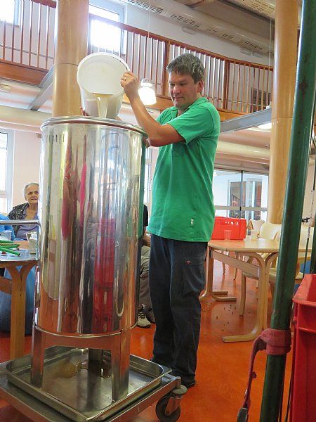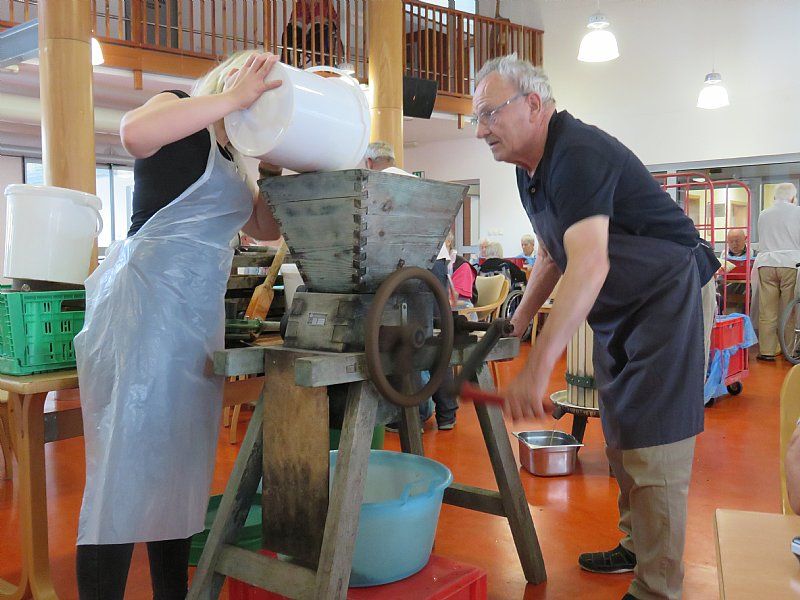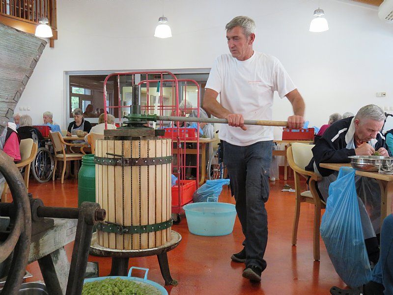 sprešali v ročni preši in dobili 180 litrov mošta,