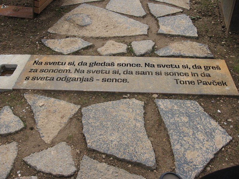 ...v tleh med tlakovci iz lomljenega asfalta vdelana misel - tule Toneta Pavčka.