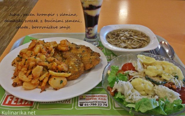 Škoda se mi zdi, da se na račun preobilja v enem meniju na eni strani toliko hrane v restavracijah zavrže, po drugi strani pa morajo obstajati razne akcije, kot je Botrstvo, kjer se plačuje najbolj ogroženim osnovnošolska kosila s prostovoljnimi prispevki državljanov :/ Ker državi pač "zmanjka" za subvencioniranje. Čuden je ta svet ...