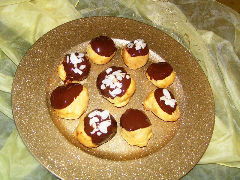 malinovi in mandljevi profiteroli