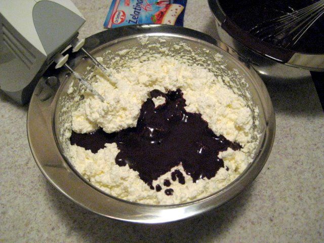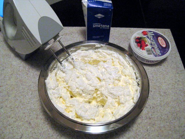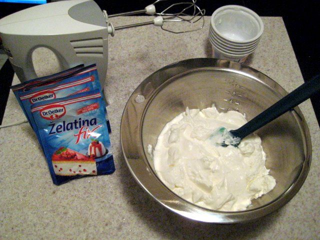Želatiniranemu jogortu dodamo stepeno smetano in mascarponeja