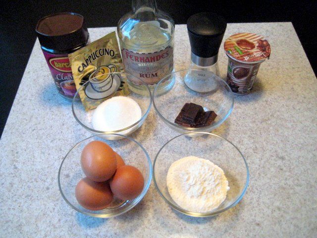 Predstavitev sestavin za kavno-čokoladno biskvitno podlago